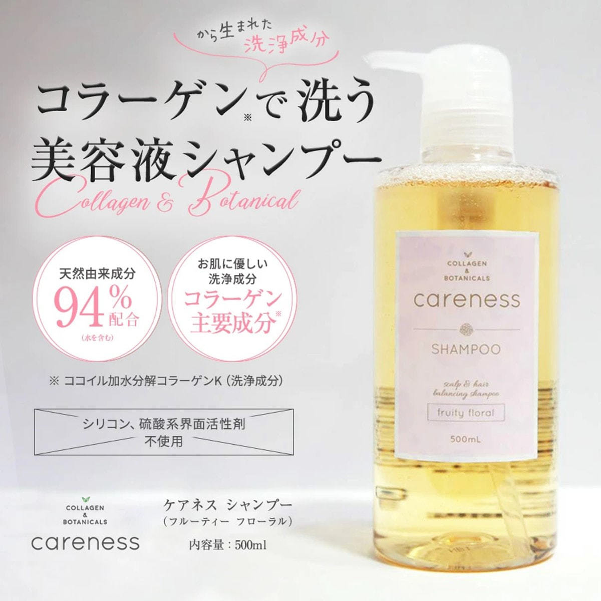 コラーゲンをはじめとするスキンケア成分94%配合!まるで美容液のようなシャンプーです。