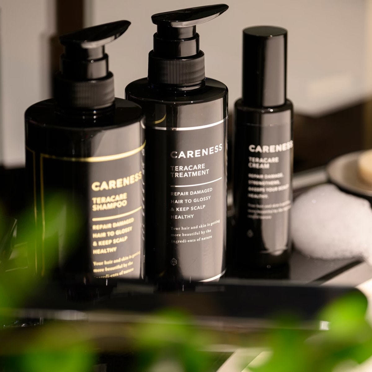適量を手にとり、手のひらでよく伸ばしてから、髪の毛先から全体へなじませてください。